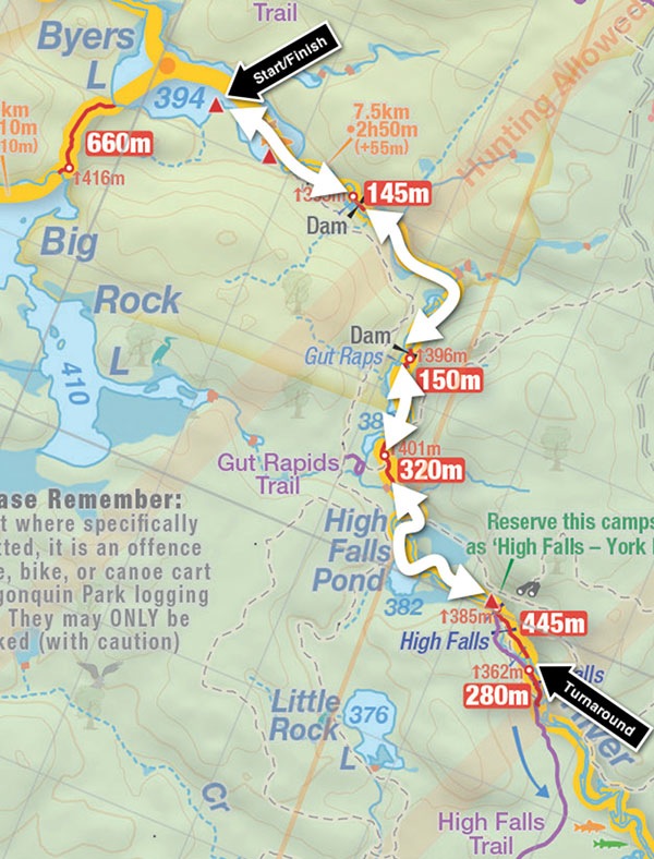 Day 3 Routing (12KM): Byers L--> York River--> High Falls Pond--> High Falls & return