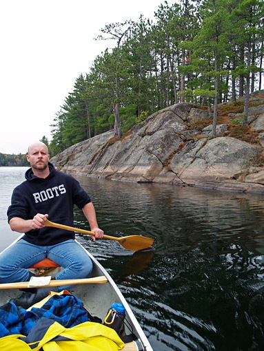 Like the upper part of the lake, there is a lot of Canadian Shield rock, only more so on the lower section. Distant thunder could be heard as we paddled onto glassy waters, heading towards the eastern shoreline, yet there was no wind, no rain; The thunder remained distant.